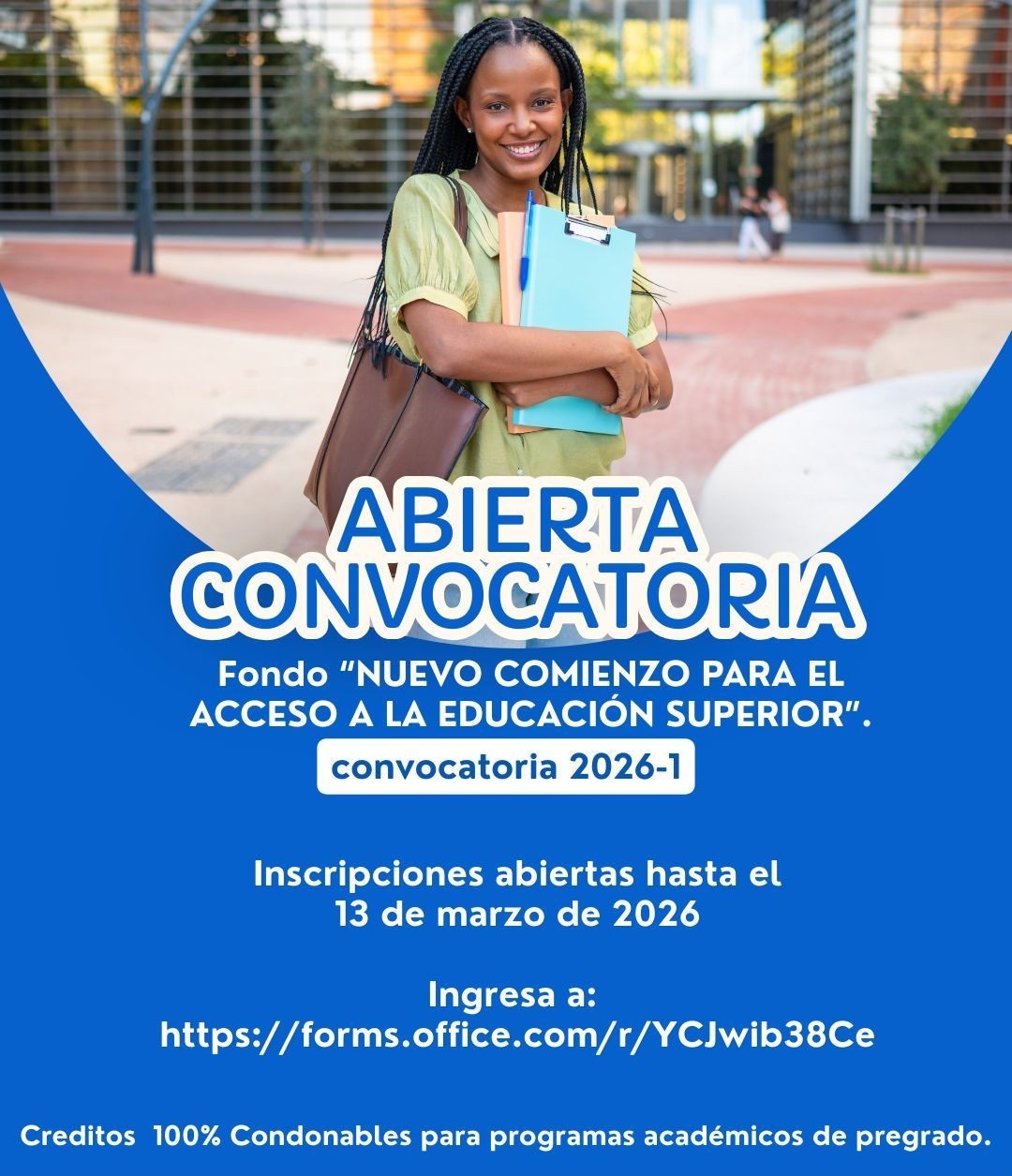 ¡Llegó el momento! Desde ahora podrás realizar el proceso de Inscripción al fondo de crédito educativo “nuevo comienzo para la educación superior 2026-1”.