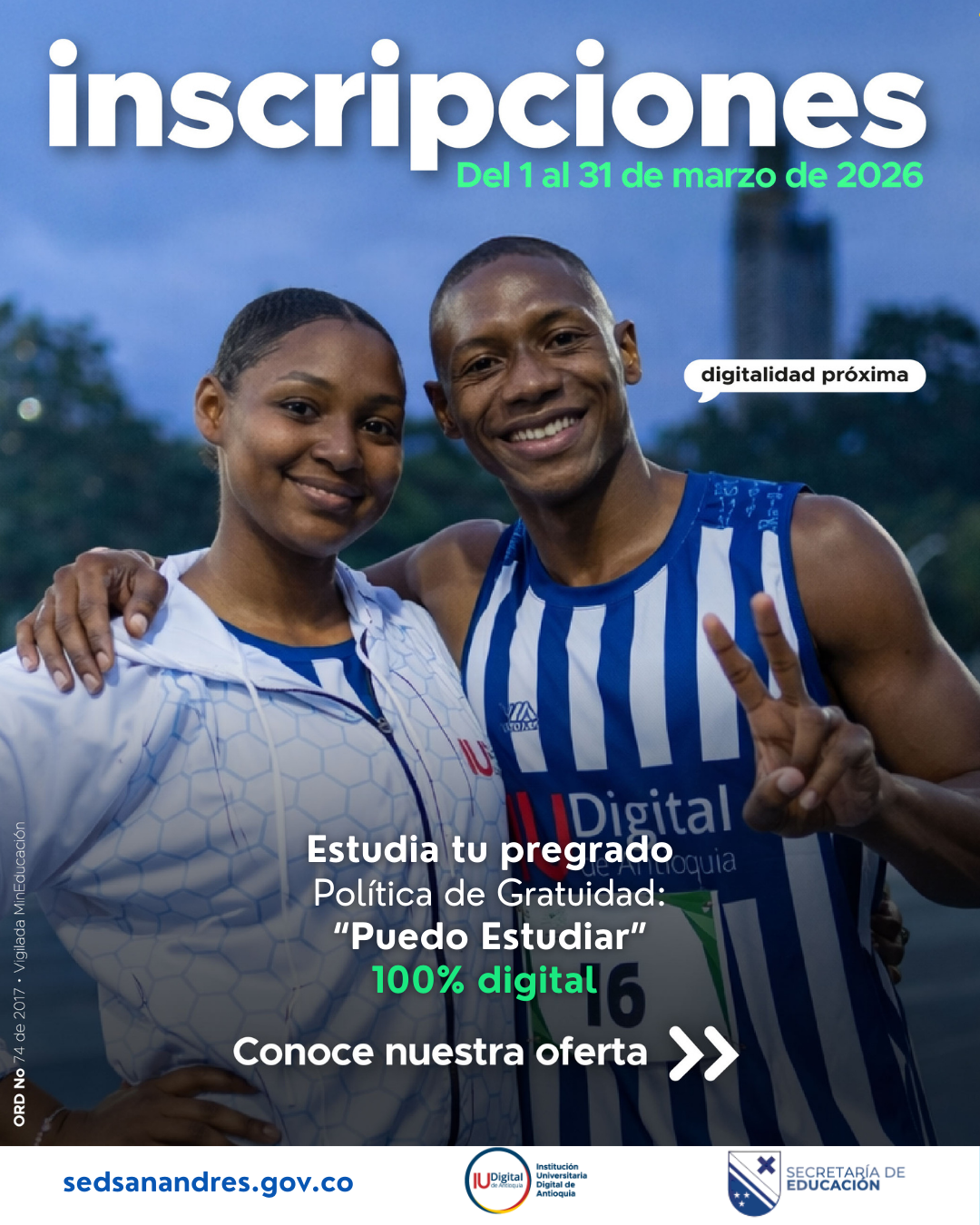 La Gobernación de San Andrés, la Alcaldía de Providencia, Santa Catalina y el Centro de Servicio Universitario ALMA MATTER invitan a todos los ciudadanos del Archipiélago a participar en la Quinta versión del Programa de Becas Parciales, una iniciativa orientada a fortalecer el desarrollo académico y profesional de la comunidad.